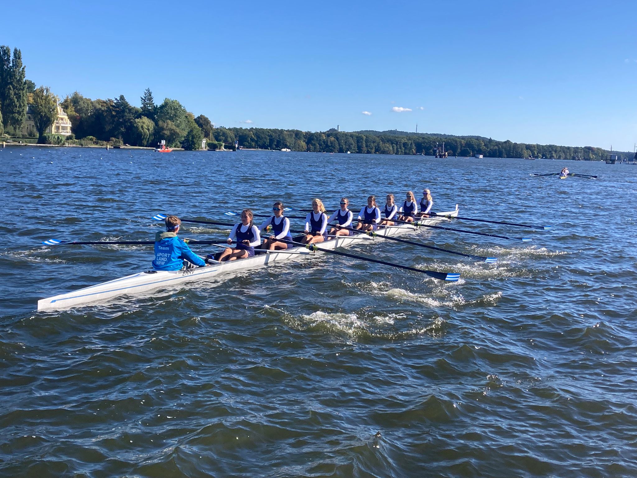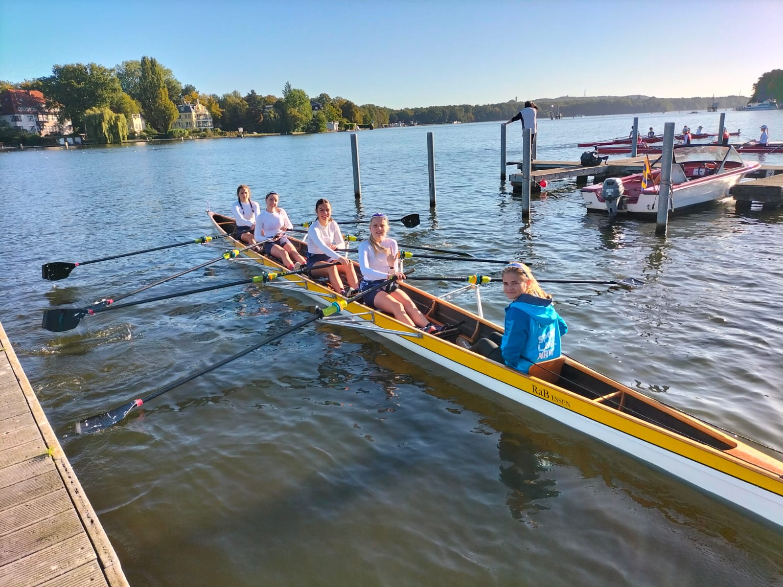 Der Ruderklub am Baldeneysee und das B.M.V. Gymnasium Essen durften in diesem Jahr das Bundesland NRW bei „Jugend trainiert für Olympia“ im Bundesfinale der Schulen vertreten. 8 Schülerinnen des B.M.V. Gymnasium konnten sich bei der Landesregatta NRW durchsetzen und die Jahrgangsklasse U18 gewinnen. Dies war die Qualifikation für die heiß begehrten Tickets nach Berlin. Der RaB ist stolz, dass die jahrelange Partnerschaft mit der B.M.V immer wieder sehr erfolgreiche Schülermannschaften hervorbringt. Hier ist der Bericht der Schülerinnen: