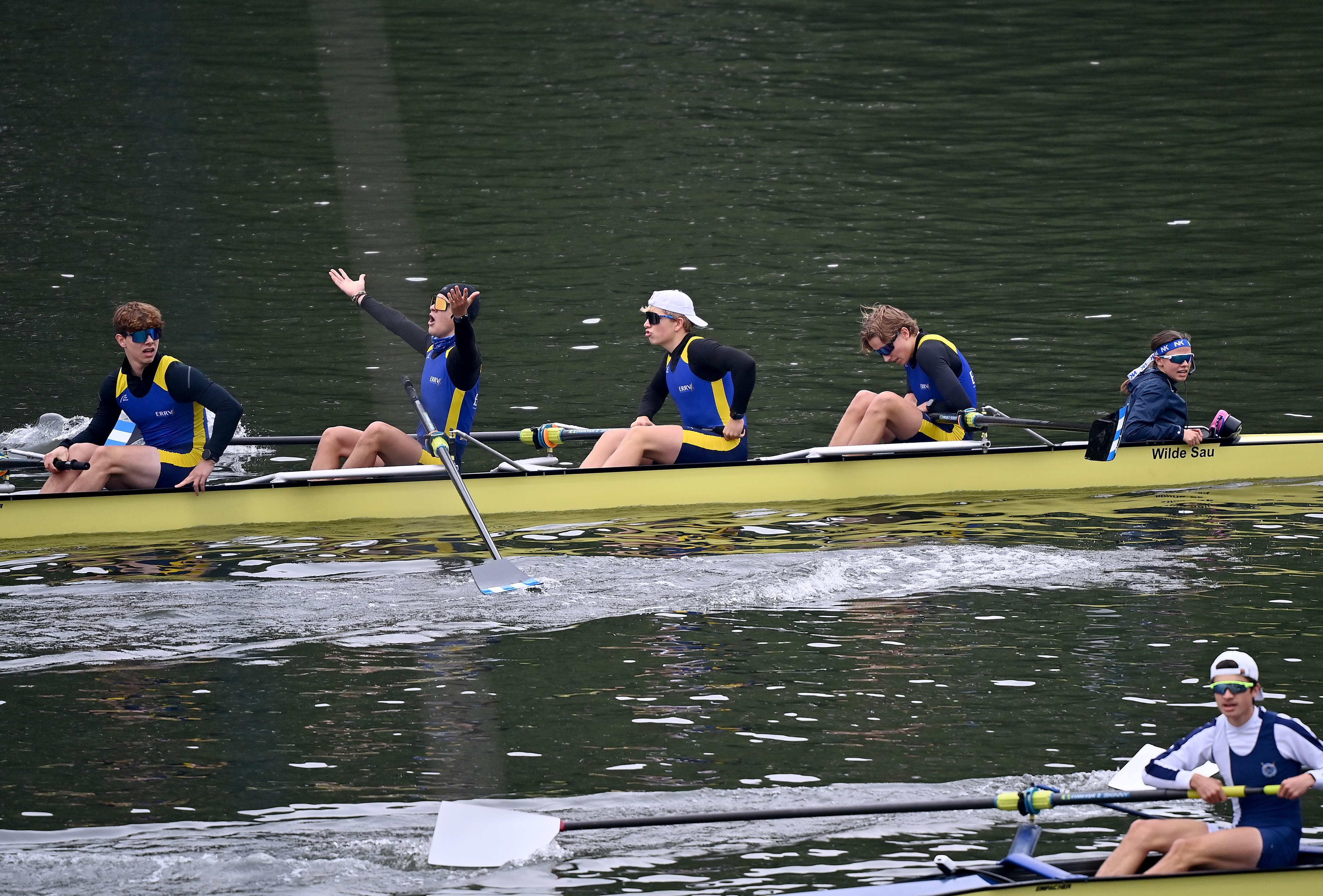 Und dieses Kunststück wiederholten sie im Doppelvierer. Allerdings durften sie diesmal allein auf der obersten Stufe des Siegerpodest Platz nehmen.