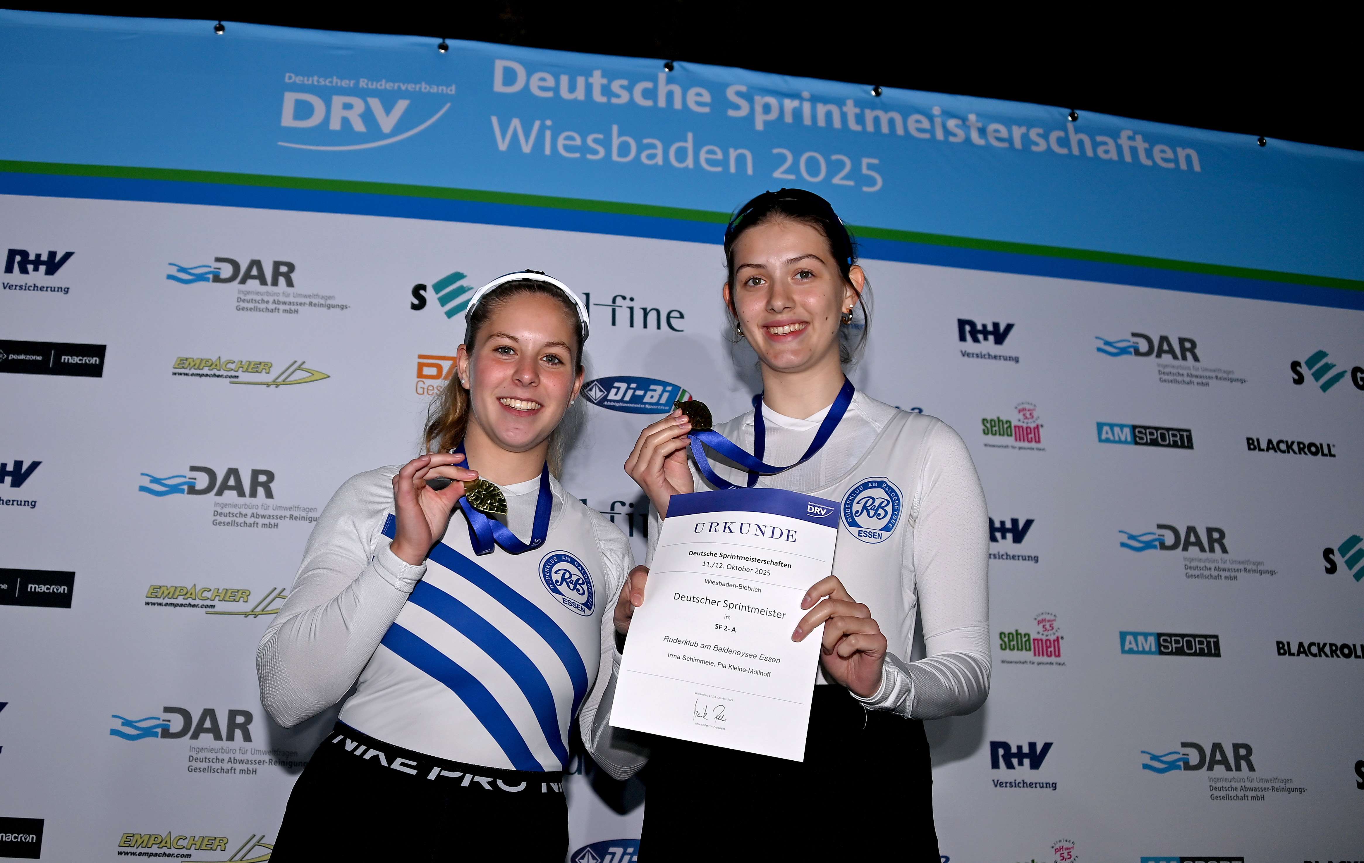 Irma Schimmele und Pia Kleine-Möllhoff mussten in ihrer Paradedisziplin bei den Seniorinnen starten, da es keinen Juniorinnen Zweier gab. Hier errungen sie die Bronzemedaille.