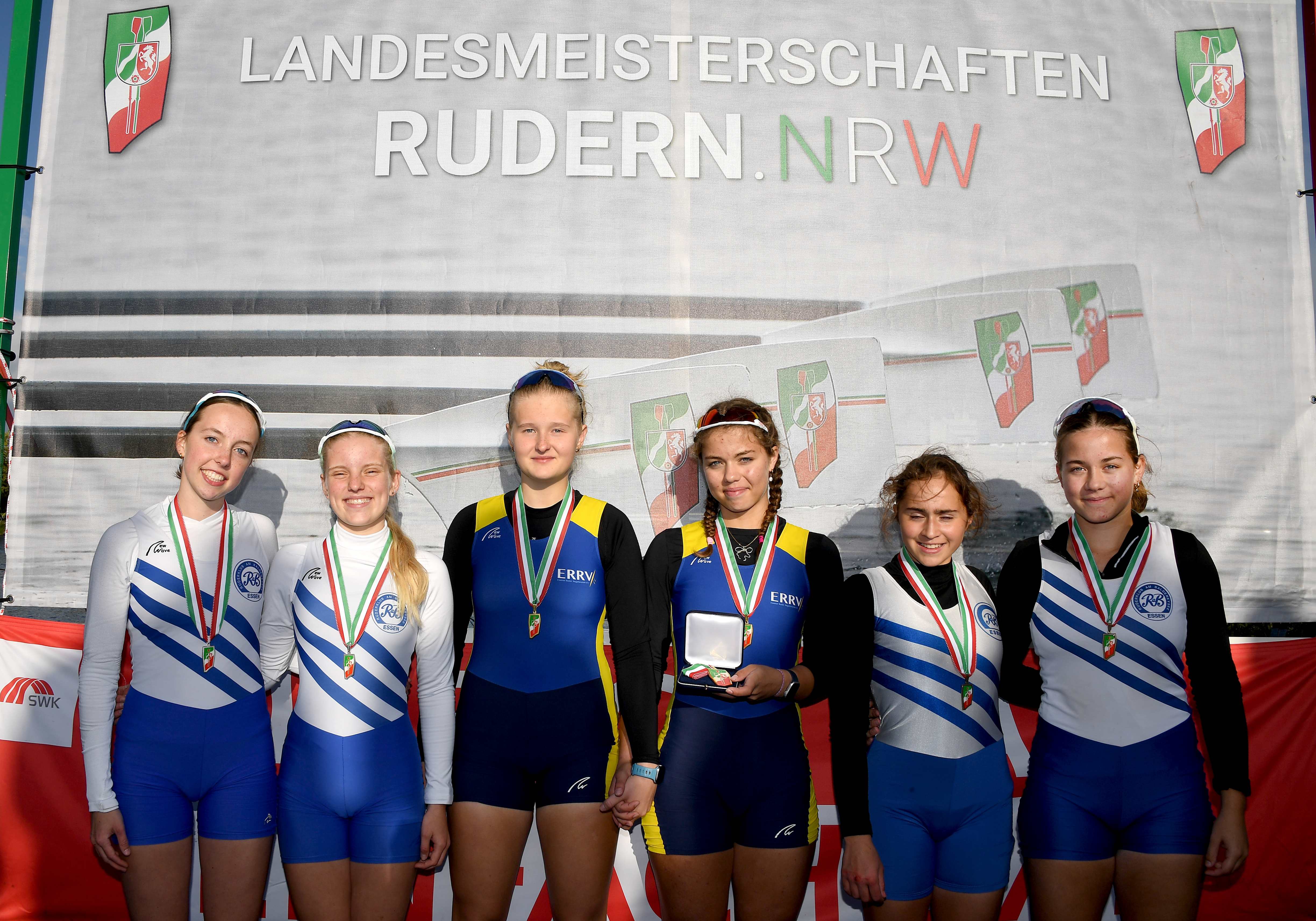Lotte Heseding, Carolina Guerra Gonzales, Sophia Reineke, Beta van Emmerich und Stm Moritz Döppner konnten auch bei der Landesmeisterschaft souverän den Doppelvierer der B-Juniorinnen gewinnen. Die erfolgreiche Kombination der deutschen Meisterschaften wurde durch Sophia ergänzt.
