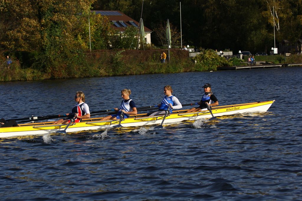 Vor sieben Jahren gab es die letzte Langstreckenregatta – durchgeführt von unseren Werdener Ruderkameraden – auf dem Baldeneysee. Im Sommer wurde die Idee geboren, unser im nächsten Jahr anstehendes einhundertjähriges Jubiläum mit der Neuauflage einer regelmäßigen Breitensportregatta im Herbst zu krönen. Der Auftakt in diesem Jahr sollte sozusagen ein Testlauf werden. Was dabei herauskam, war gleich viel mehr, nämlich eine wunderbare Regatta, bei der fast alles stimmte. Im engen Terminkalender des Baldeneysees konnten wir uns am 26. Oktober noch in ein Vormittagsfenster quetschen. Der Wettergott spendierte einen wunderschönen Herbsttag mit Sonnenschein und nur ein wenig Wind. Das Meldeergebnis mit über 50 Booten, davon einige aus Holland und aus anderen Bundesländern übertraf die Erwartungen. Den Aufbau der Bojenkette übernahmen die Sport- und Bäderbetriebe der Stadt Essen, und das bewährte Team des ERRV um Thorsten Kolb sorgte für perfekte Veranstaltungstechnik. Dabei war die Live-Übertragung von Fotos des Renngeschehens nur eines der Highlights. Vereinsmitglieder und unsere Gastronomen sorgten für ein großes Angebot an Getränken und Verpflegung.