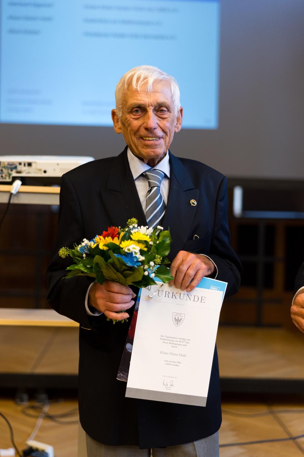 Unserem langjährigen Wanderruderwart und Fahrtenbuchspezialisten Klaus Huth wurde beim diesjährigen Wanderrudertreffen in Berlin eine besondere Ehre zuteil. Er erhielt den Äquatorpreis für seine Ruderleistung zum zweiten Mal.