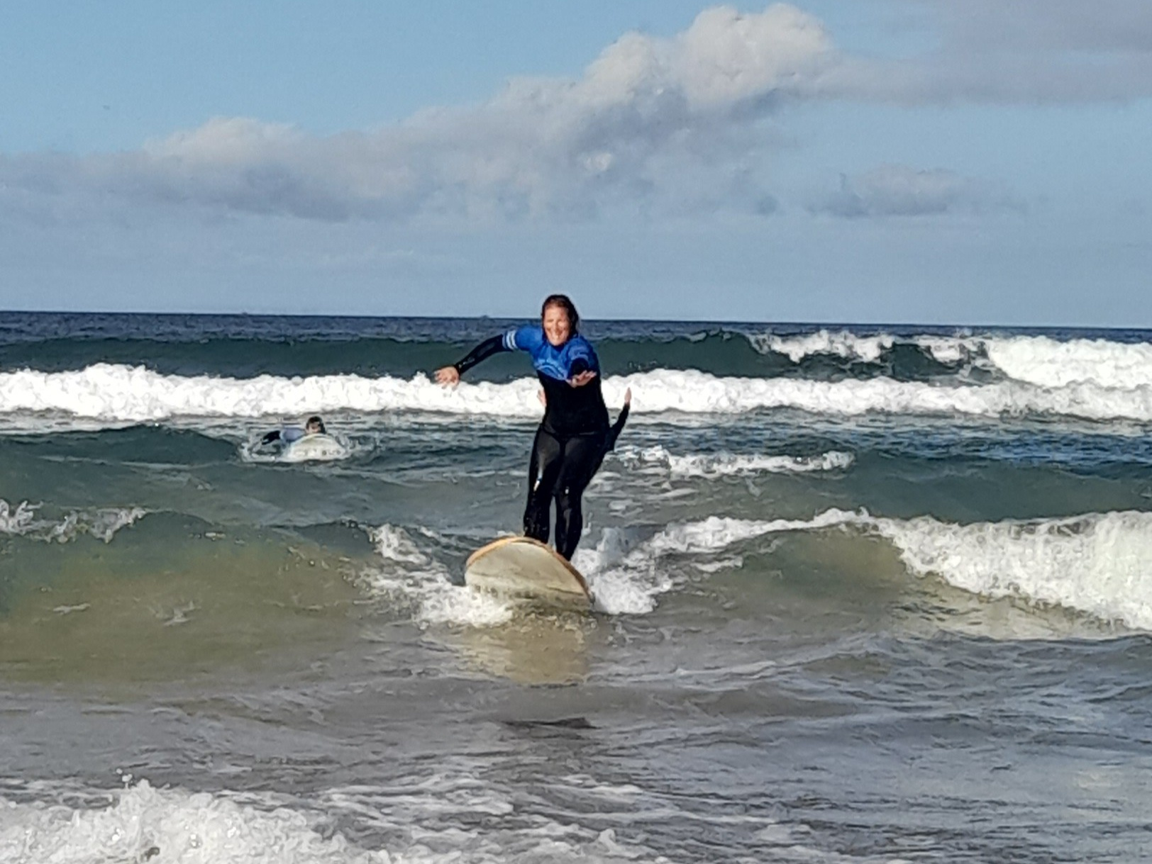 Am dritten Nachmittag ging es für unsere gesamte Gruppe aufs Surfbrett. Besonders eindrücklich war für uns, als Erwachsene erneut eine Wassersportart von Grund auf zu erlernen, die eigenen Grenzen so deutlich zu spüren und zugleich die unmittelbare Verbindung zwischen Sport und Ozean zu erleben. Die Gespräche mit der Surfschule vor Ort ergänzten dieses Erlebnis um eine praktische Sicht auf ihre alltäglichen Fragen rund um Material, Ausbildung und Sicherheitsstandards und den Umgang mit Tourismus.