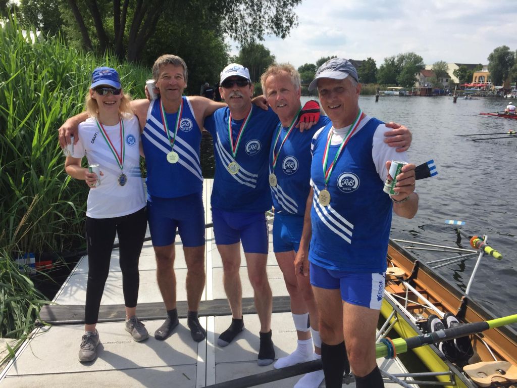 Bei Temperaturen um die 30 Grad gelangen den RaB Masters in der Altersklasse F (Durchnittsalter 60 Jahre) 2 Siege direkt am ersten Tag. Im gesteuerten Vierer legten Karl-Heinz Kroll, Günter Saul vom RV Blankenstein, Roland Rottländer, Jürgen Böning und Steuerfrau Katrin Günther am Siegersteg an. Bei 750 Metern noch mit einer Länge Rückstand auf dem letzten Platz liegend, brachte ein fulminanter Endspurt den Sieg mit 1 Sekunde Vorsprung.